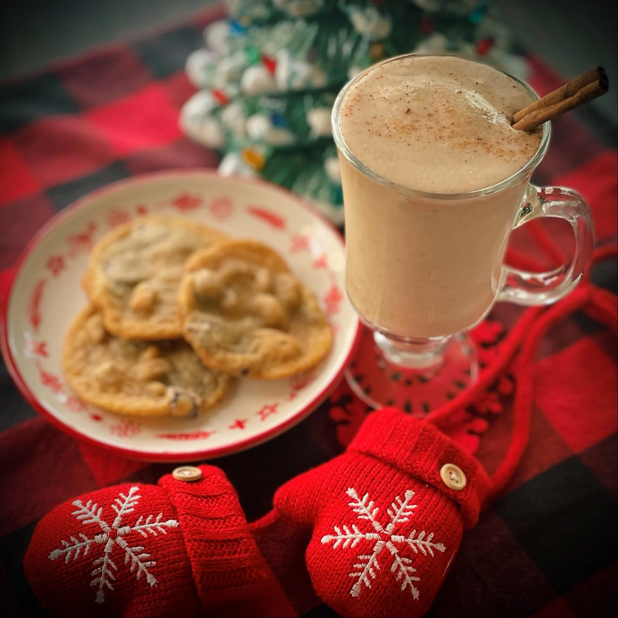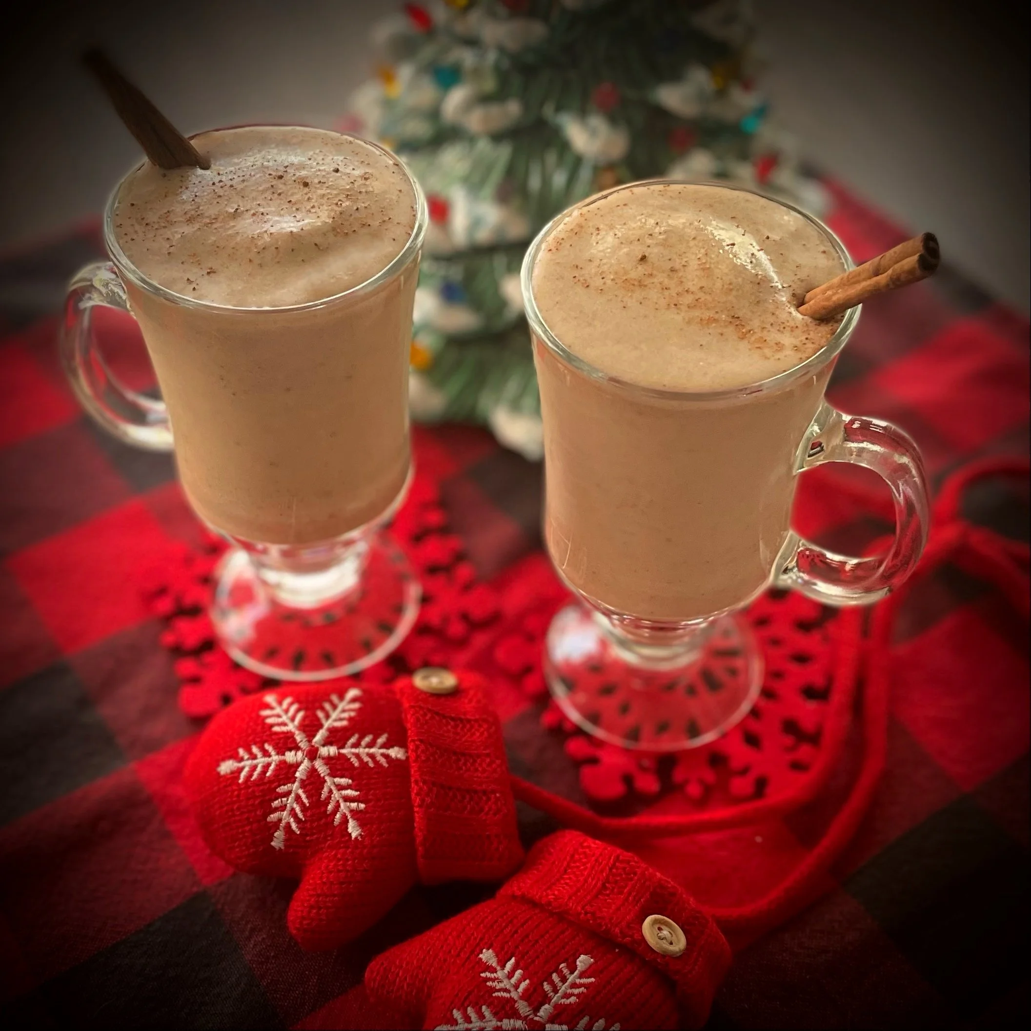 Pour into serving glasses and sprinkle with a dusting of nutmeg, if desired or add a cinnamon stick for garnish. Makes two 9oz servings. (See nutritional information on recipe card at bottom of page)
