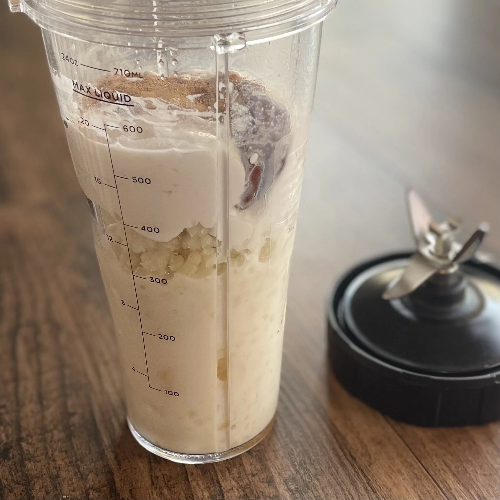 Note: Blender and smoothie makers can have different instructions on loading ingredient types (example: My Vitamix blender recommends loading liquids first, however my Ninja smoothie cup recommends loading frozen ingredients first.) Read recommended instructions for loading your particular blender or smoothie maker for optimal performance and a smooth outcome.