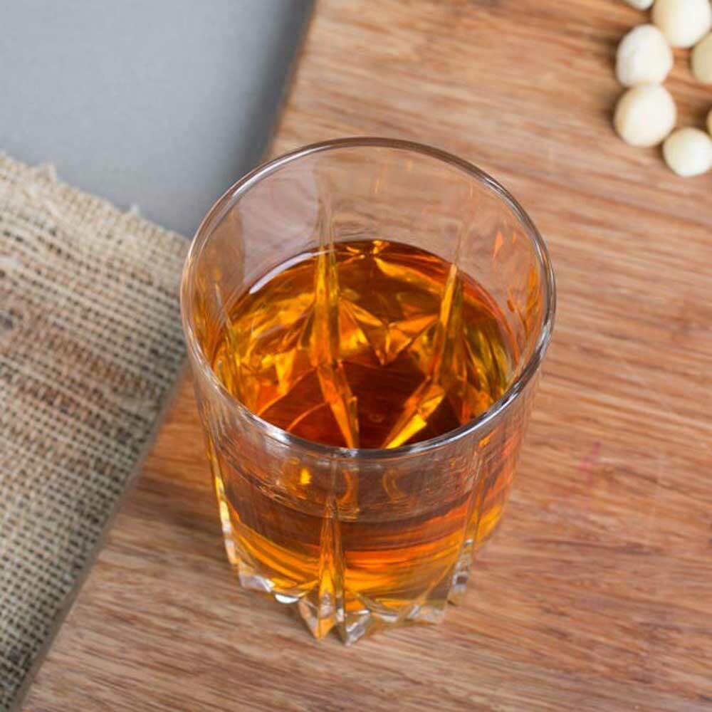 Transfer to a drinking glass and garnish, if desired.